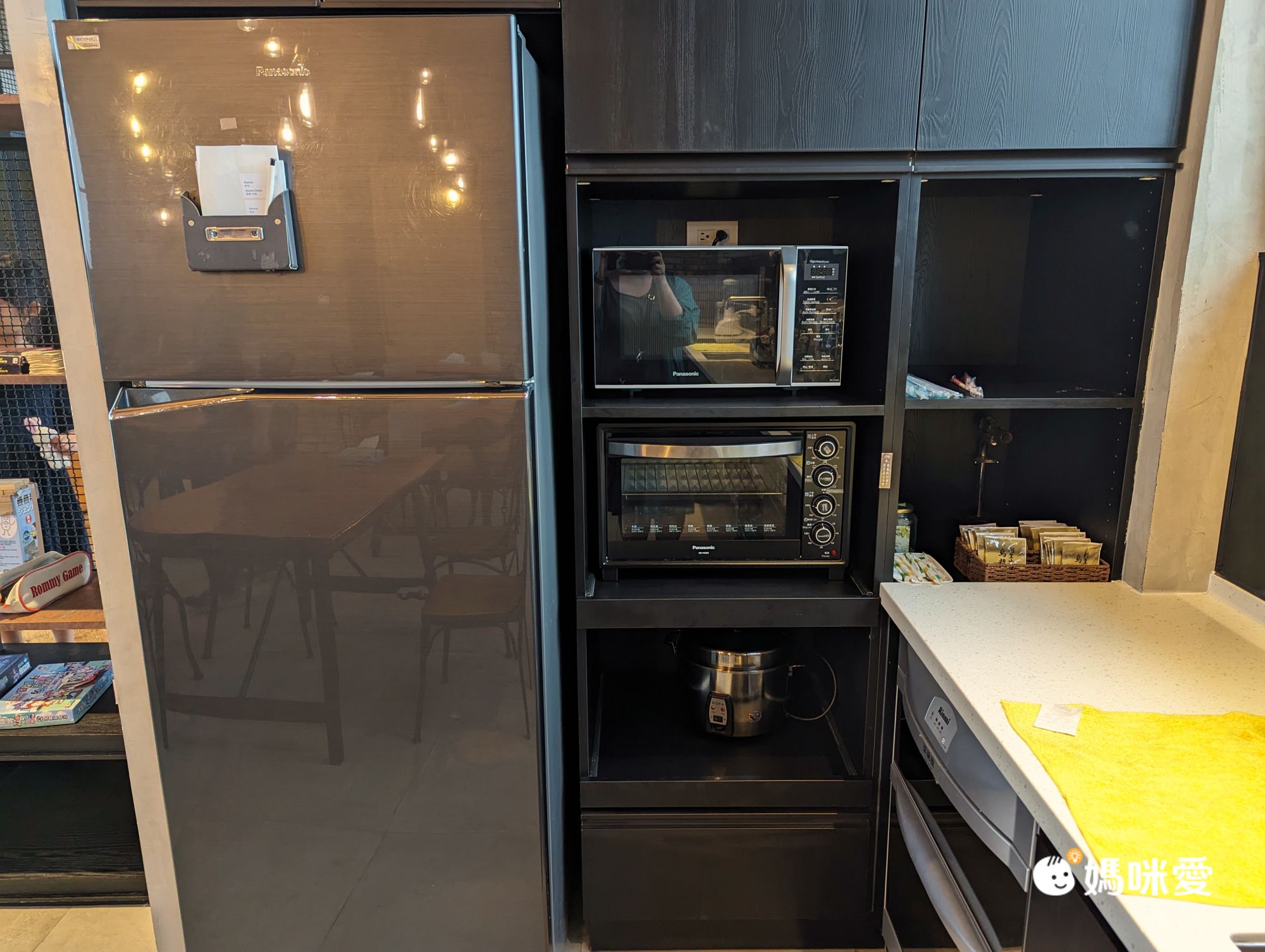 室內的交誼空間有很多張餐桌、電器設備(冰箱/微波爐/IH爐),不管是背包客還是家庭客都可以舒適地在這邊小憩、用餐~
