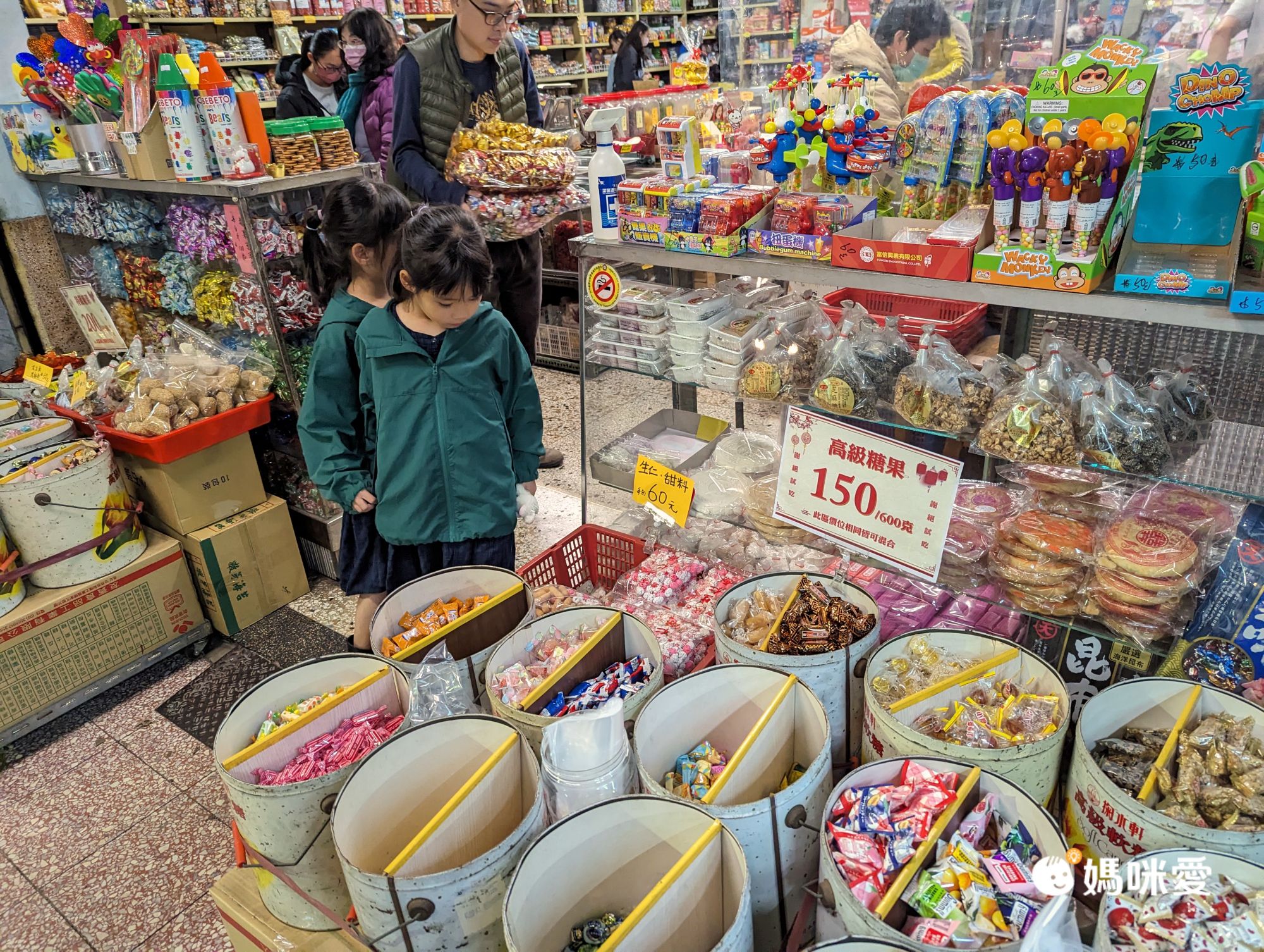 夜市附近的雜貨店,經過時看到有點人龍,跟著人群去挖寶,果然不會失望!很多爸媽小時候愛的懷舊零食,這邊都有!爸比自己也買了很多餅乾糖果,兩位樸實的孩子在這樣琳琅滿目的店裡,一個選了花生糖,一個選了小饅頭~