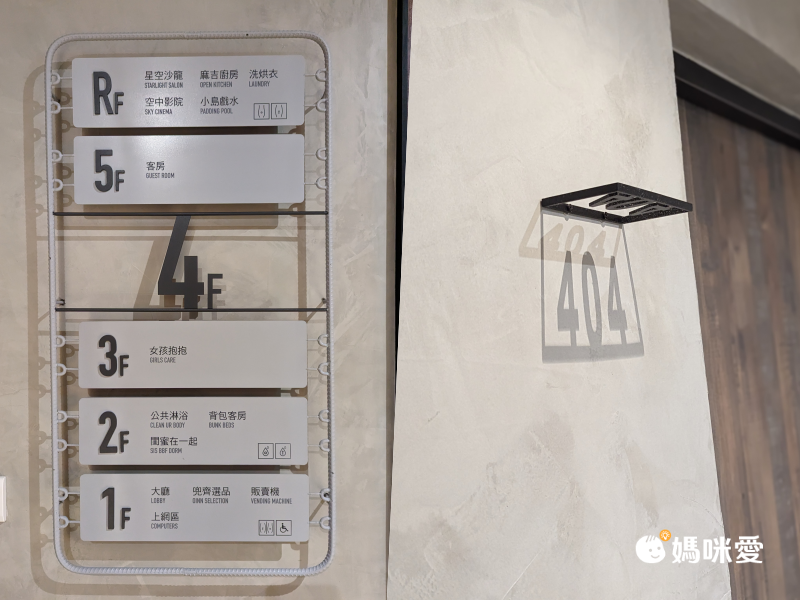【台南行旅(台南OINN HOTEL)】館內有分一般房型與背包客房,有分層管理。像是我們這次入住的就是位於四樓的四人客房,房間門牌是用影子的方式呈現,覺得很有設計感好特別!