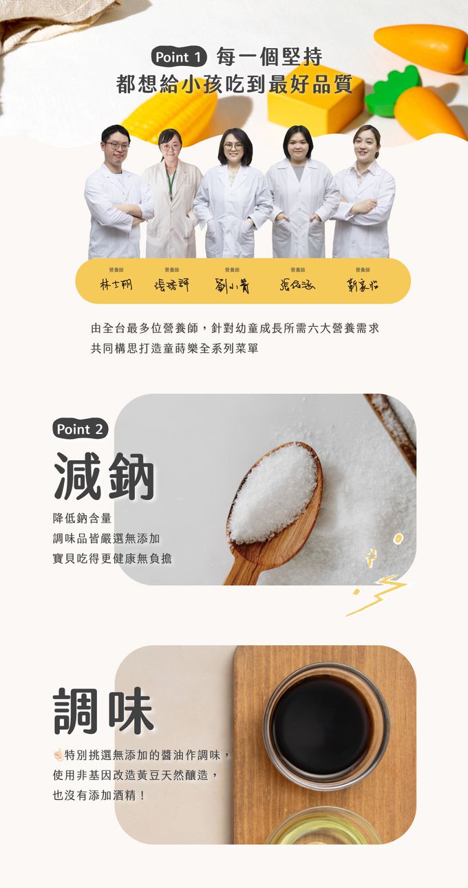 ☞減納:薄鹽薄糖低調味,不造成幼兒身體負擔