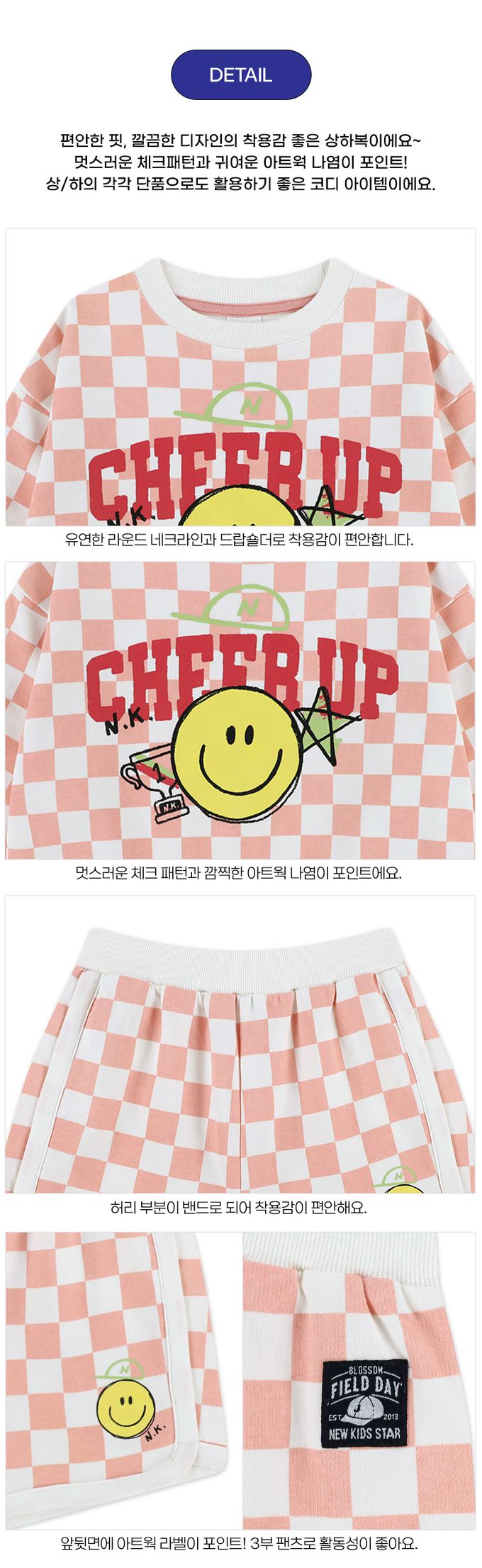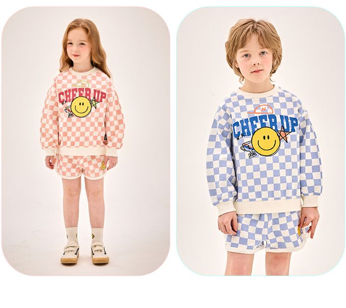 • 品名:棋盤格笑臉印長袖上衣短褲套裝