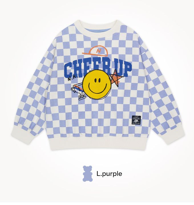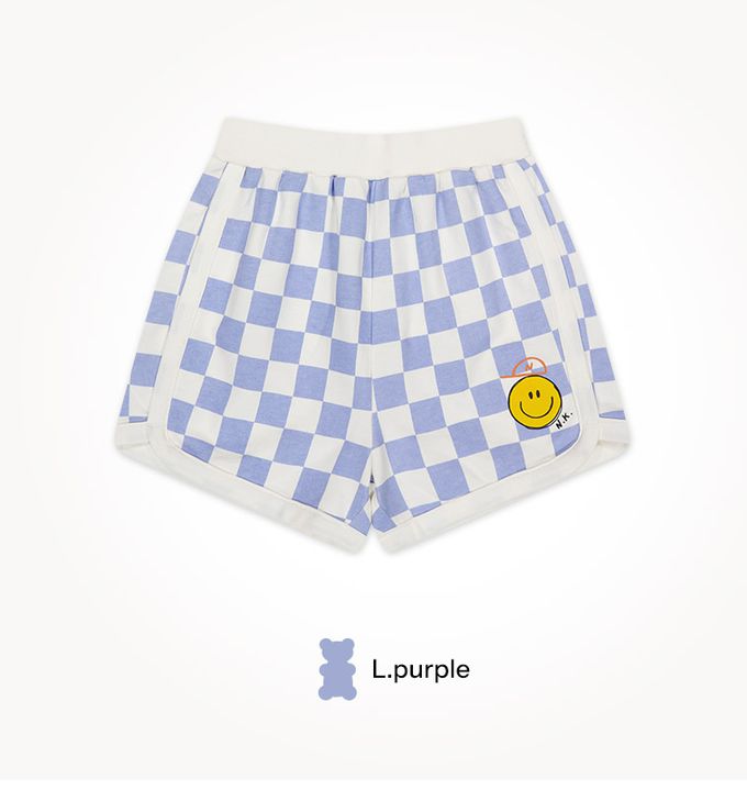 • 棋盤格紋x笑臉圖樣,活潑可愛