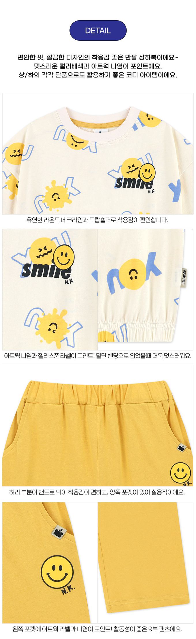 韓國 Jelispoon - 表情圖案印短袖上衣長褲套裝