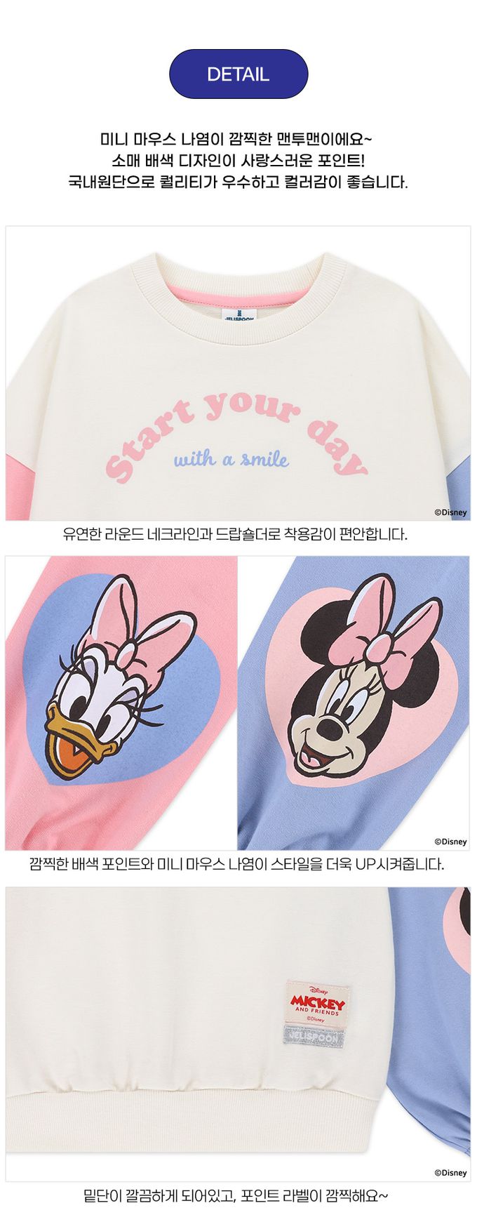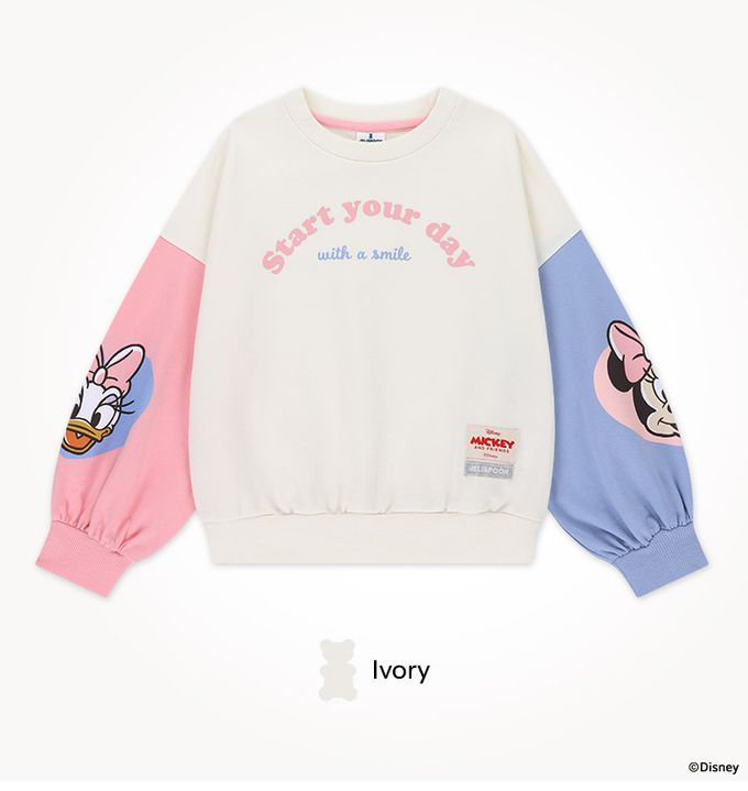 韓國 Jelispoon - (聯名款)卡通女孩印蓬蓬長袖上衣-粉X米X藍