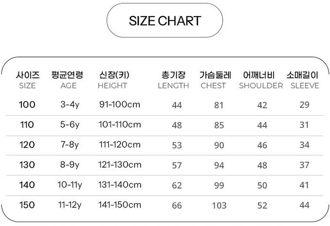 尺寸齊全,91-150公分的尺寸都有,大小孩和小寶貝都可以穿!