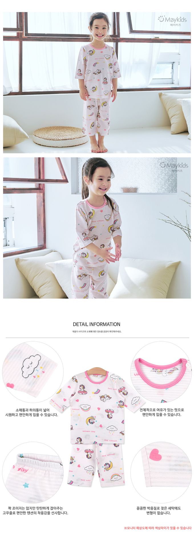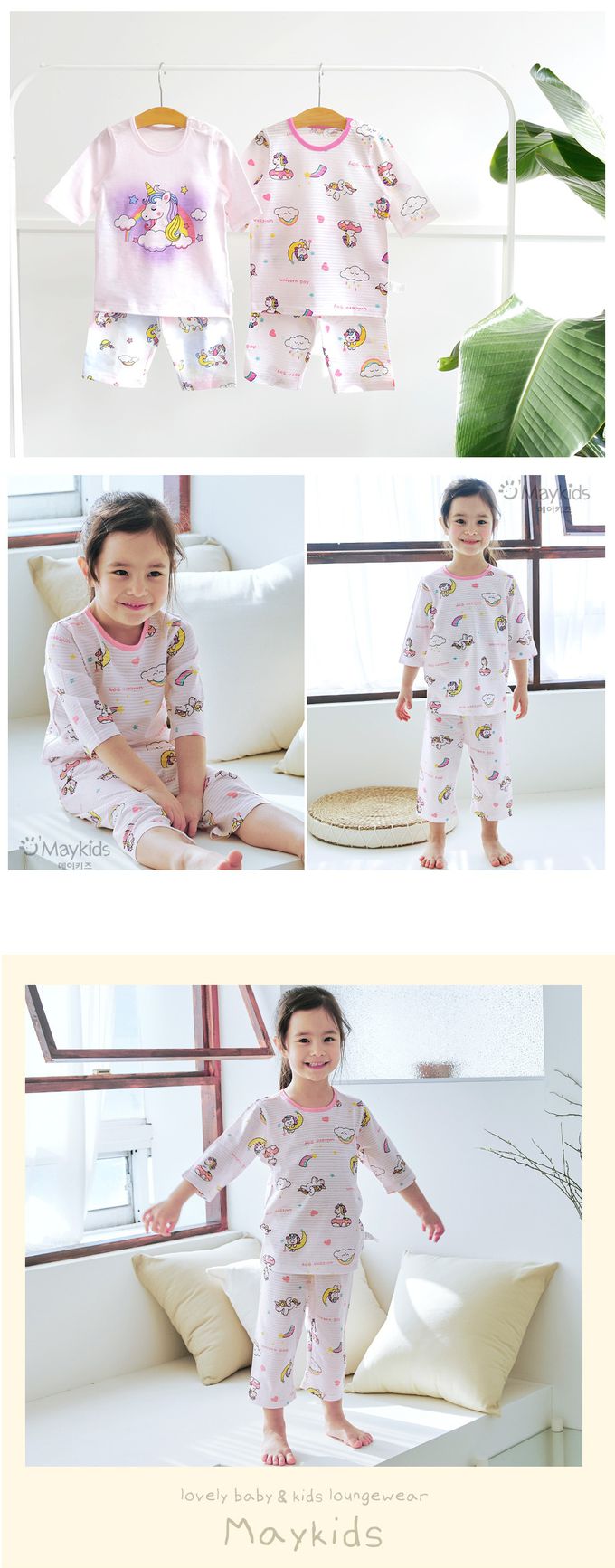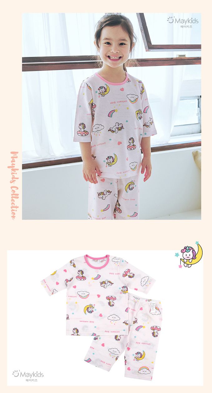 韓國 Maykids - 無螢光棉透氣七分袖家居服-童趣獨角獸