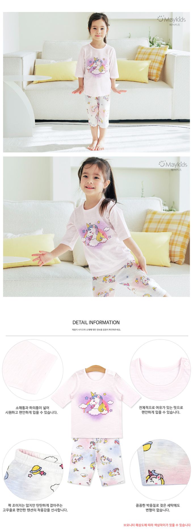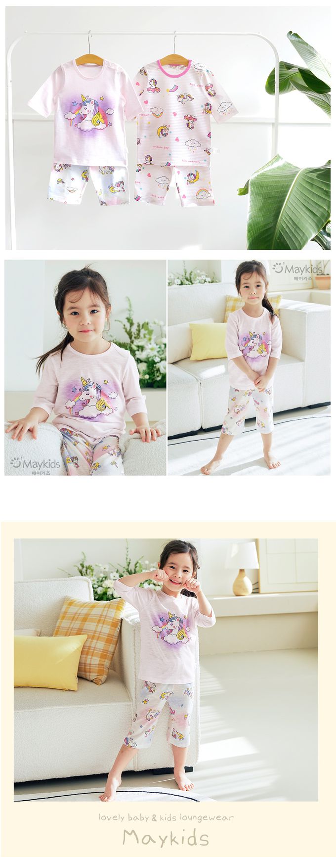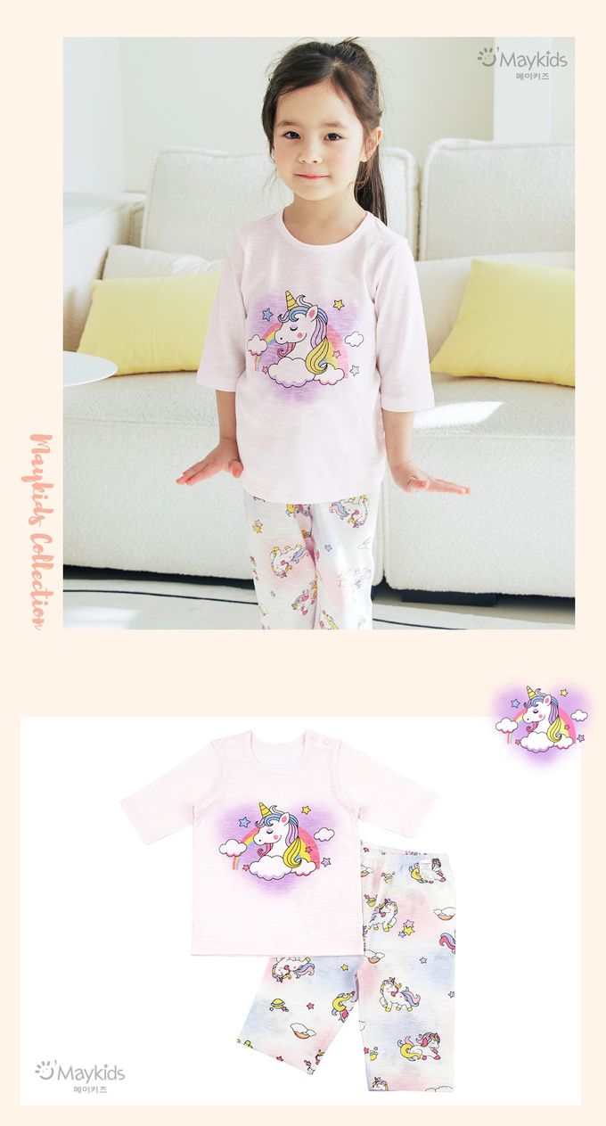 韓國 Maykids - 無螢光棉細柔七分袖家居服-夢幻獨角獸