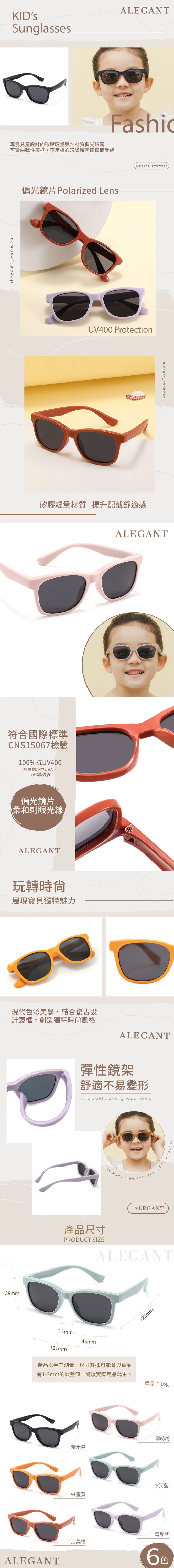ALEGANT - 遊樂時尚兒童專用輕量矽膠彈性太陽眼鏡│UV400偏光墨鏡
