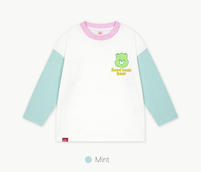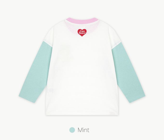 韓國 Care Bears - 聯名款眨眼熊熊長袖上衣-象牙白X湖水綠