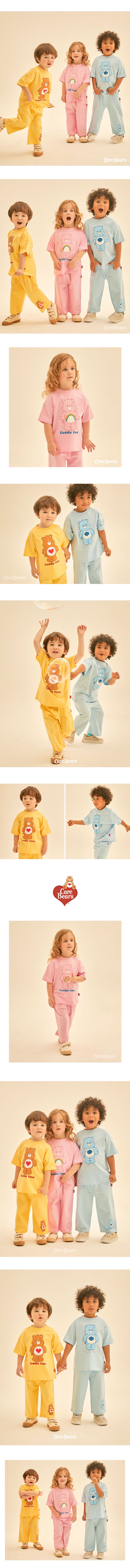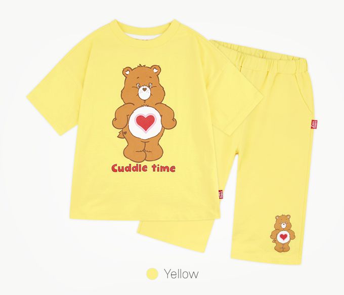 韓國 Care Bears - 聯名款熊熊短袖長褲套裝-棕熊-黃