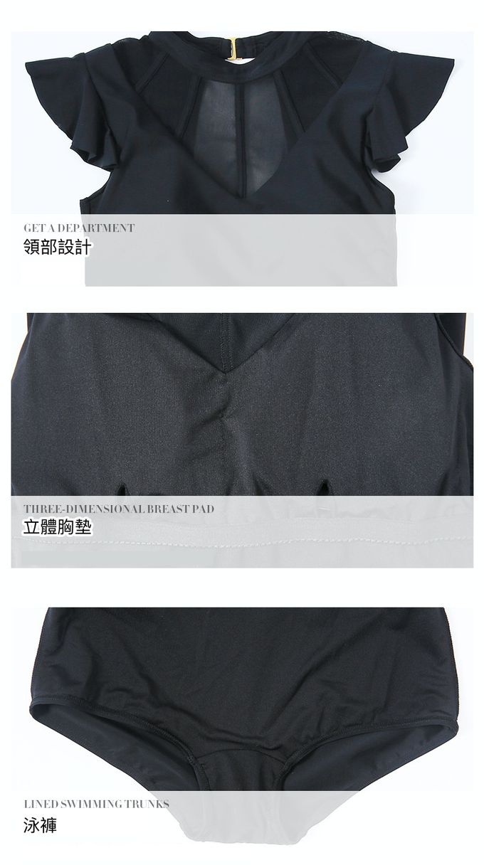 品名:小心機網紗露背荷葉袖連身泳衣