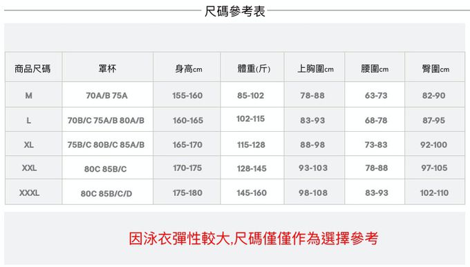 注意事項:1.選購前務必參考尺寸表挑選適合的尺寸,因為泳衣屬於貼身衣物,基於個人衛生考量,若非商品瑕疵,拆封後不予退換,感謝理解。 2.若對尺寸挑選或商品有任何疑問歡迎與我們聯繫,媽咪愛 LINE@客服ID:@mamilove