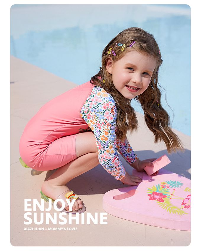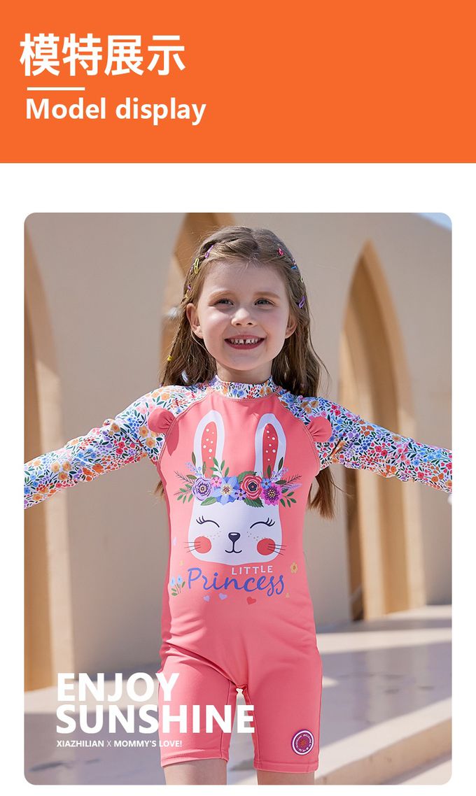 品名:女寶防曬長袖連身泳裝套裝(附帽子)