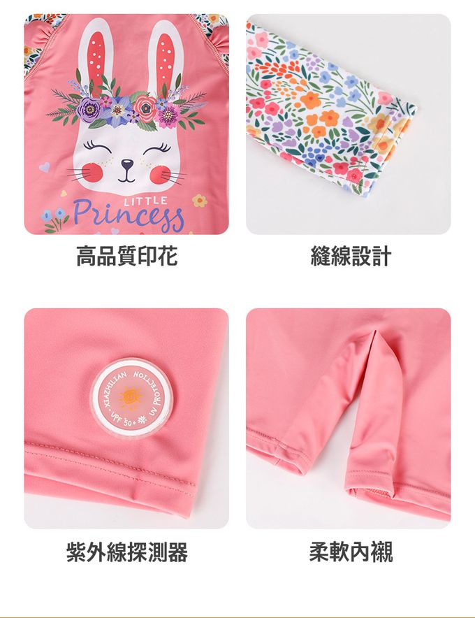 女寶防曬長袖連身泳裝套裝(附帽子)-花圈兔兔-粉色