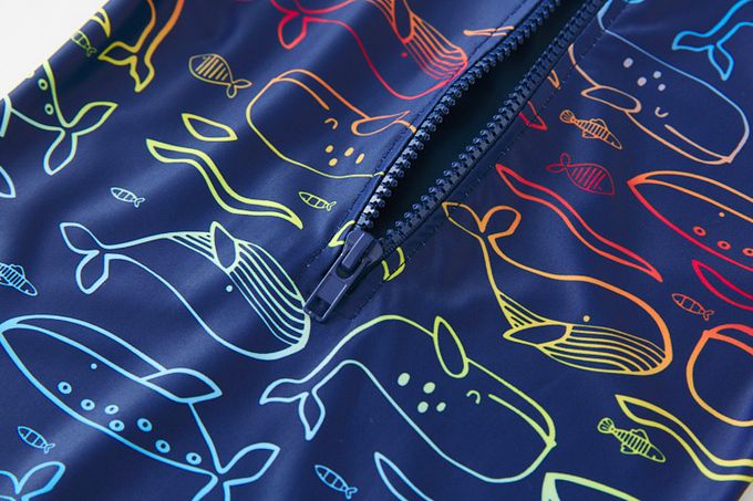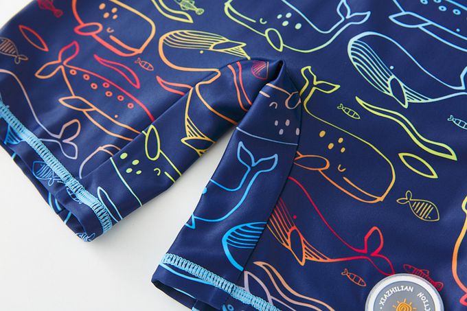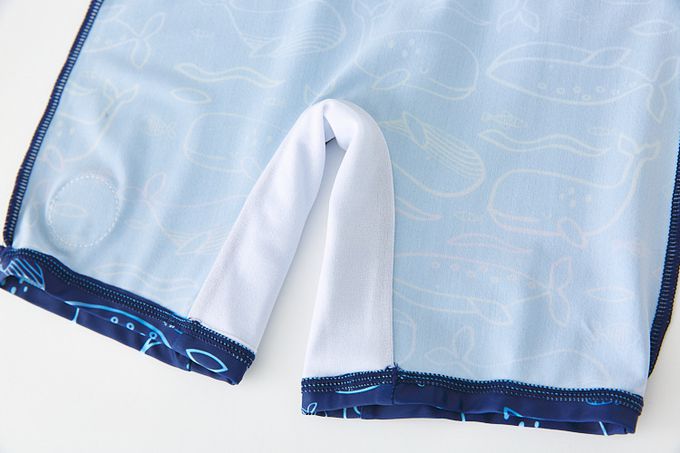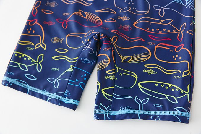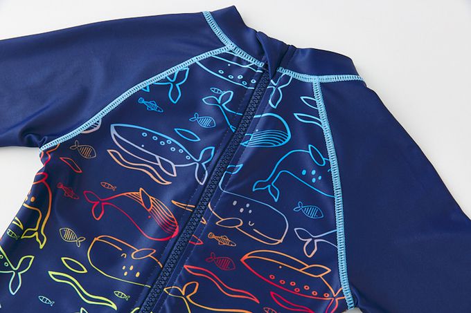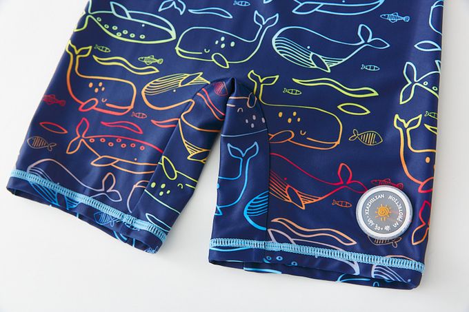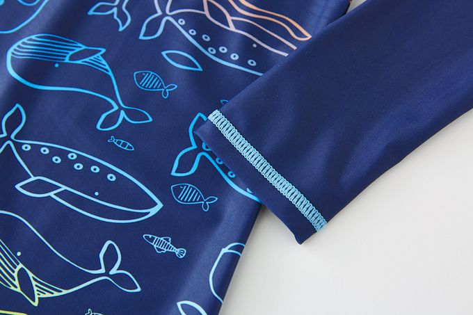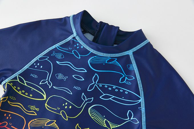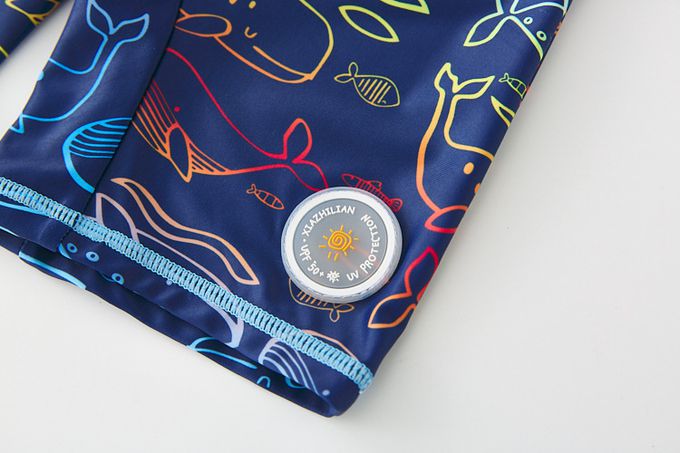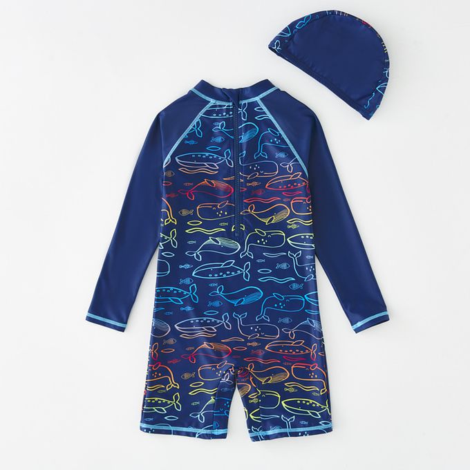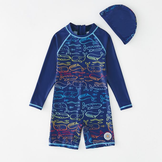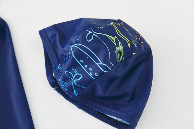 男寶防曬長袖連身泳裝(附帽子)-漸層鯨魚-深藍色