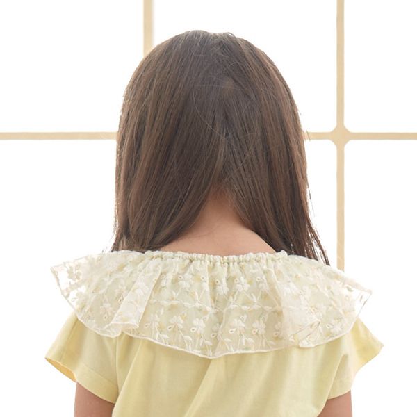 荷葉領使用的是偏硬挺的布料,讓領口不會塌塌的沒精神。
