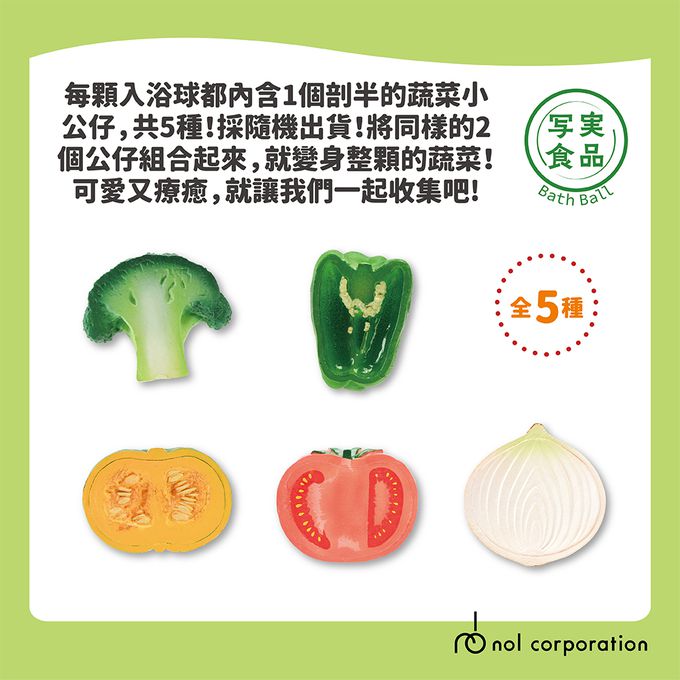 將剖半的蔬菜公仔導入入浴球新構想,趣味又療癒! 看起來跟真的食物一樣!連小細節都超逼真呢!