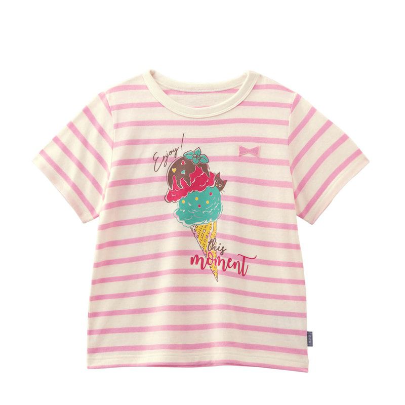 日本千趣會 - GITA 純棉印花短袖上衣-冰淇淋-粉紅條紋