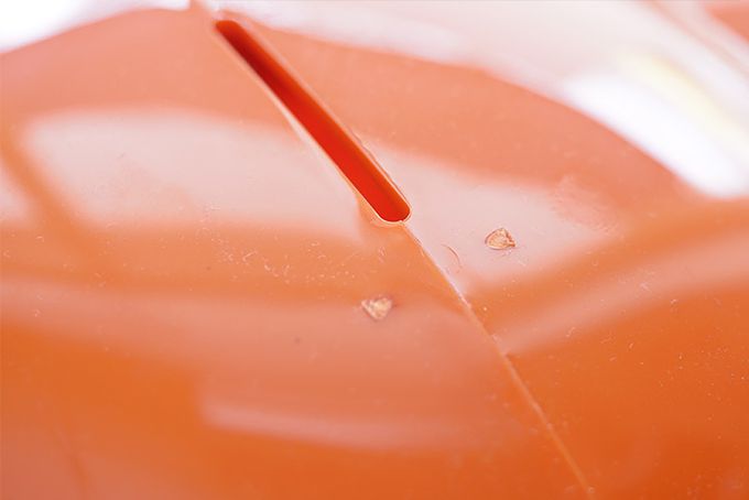 材質為塑膠,每個存錢筒都會有從模具分離的痕跡(如下圖)此非瑕疵,若介意者請於購買前審慎思考。