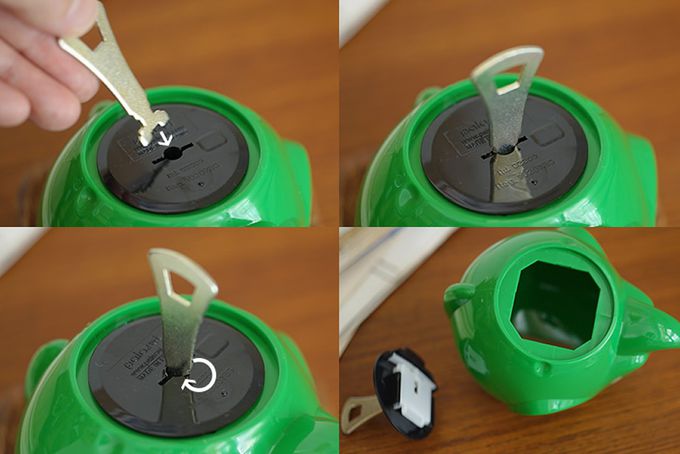 打開零錢筒底蓋的方式為: