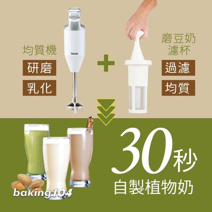 磨豆奶濾+專業型手持攪拌棒/均質機組合-白色