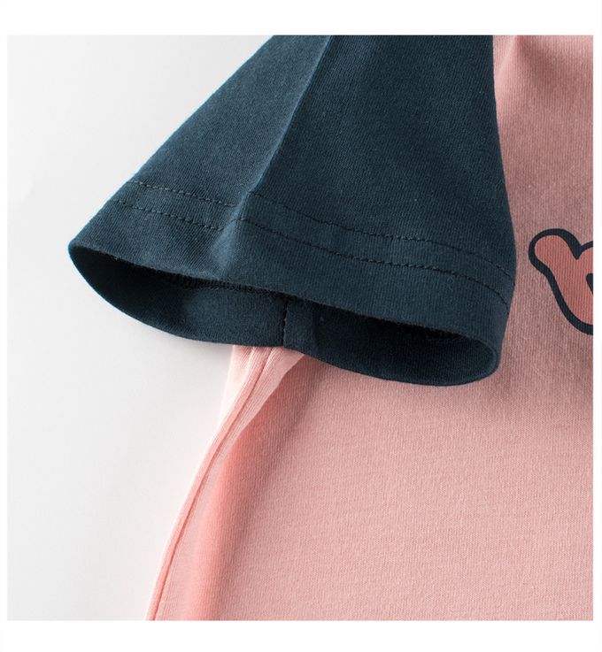 純棉短袖上衣-哈囉小熊-粉红+深藍