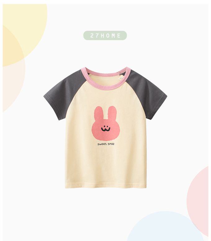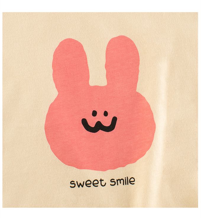 純棉短袖上衣-微笑粉兔-米杏+深灰