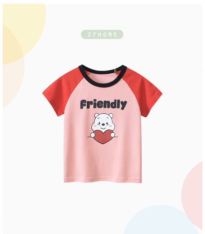 純棉短袖上衣-熊熊懷抱愛心-粉色