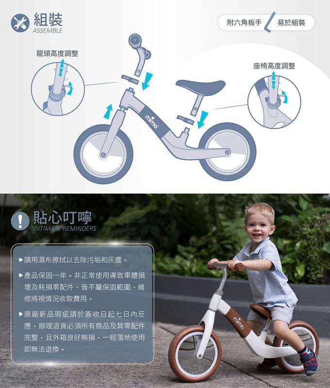 舒適的橡膠手把好抓握,龍頭高度可調整
