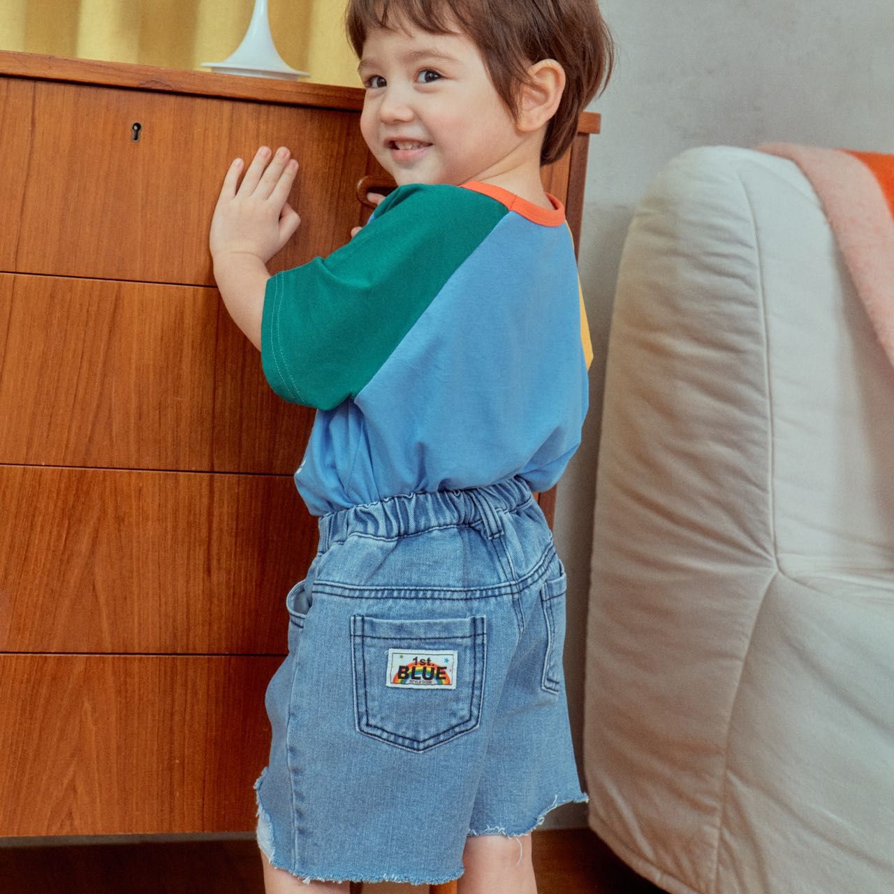 韓國 First Blue 夏季新款來啦✿ 他們家是走休閒實穿的版型,上學、出遊穿都簡單百搭~ 有童趣笑臉、可愛動物等元素,俏皮繽紛色系 x 文青氣質色系,90-133cm 男女寶都有得選哦!全品項韓國製造,質感好又特別可愛♥ 想買美美的正韓貨,要早點預購才不怕被搶光!穿得漂亮整齊,寶貝上學也有好心情ヾ(*´∀ ˋ*)ノ 上衣、短褲、褲裙通通有,快來看看吧!