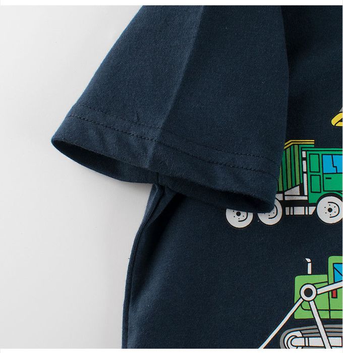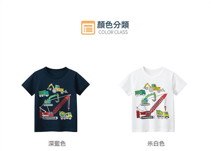 純棉短袖上衣-工程車挖土機-深藍色