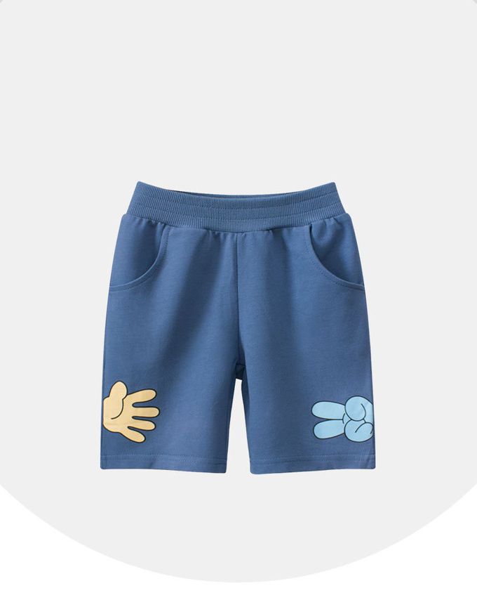 純棉腰鬆緊五分褲-剪刀石頭布-藍色
