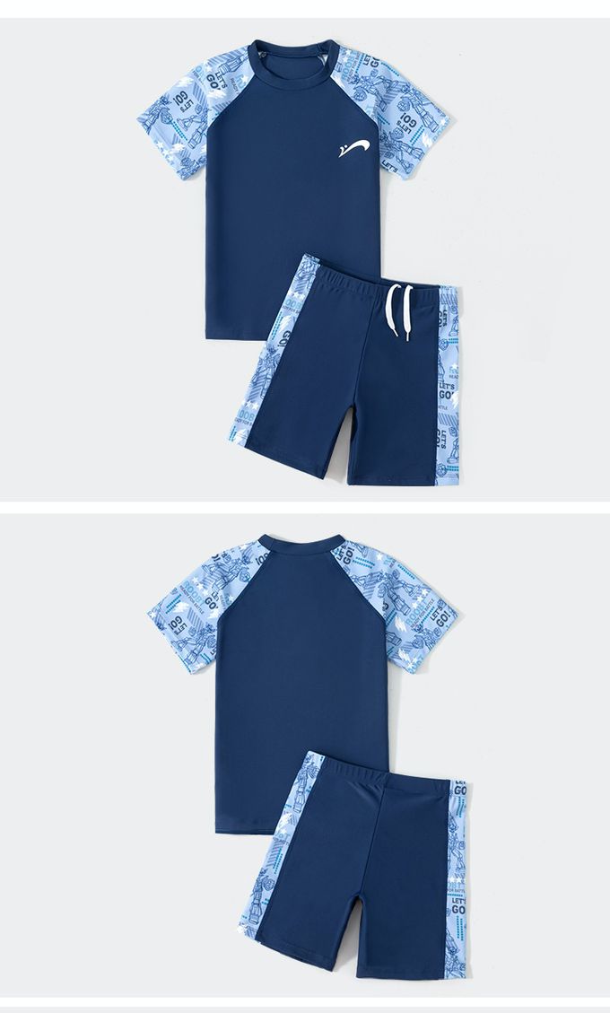 男寶短袖泳裝套裝-LET'S GO機器人-深藍