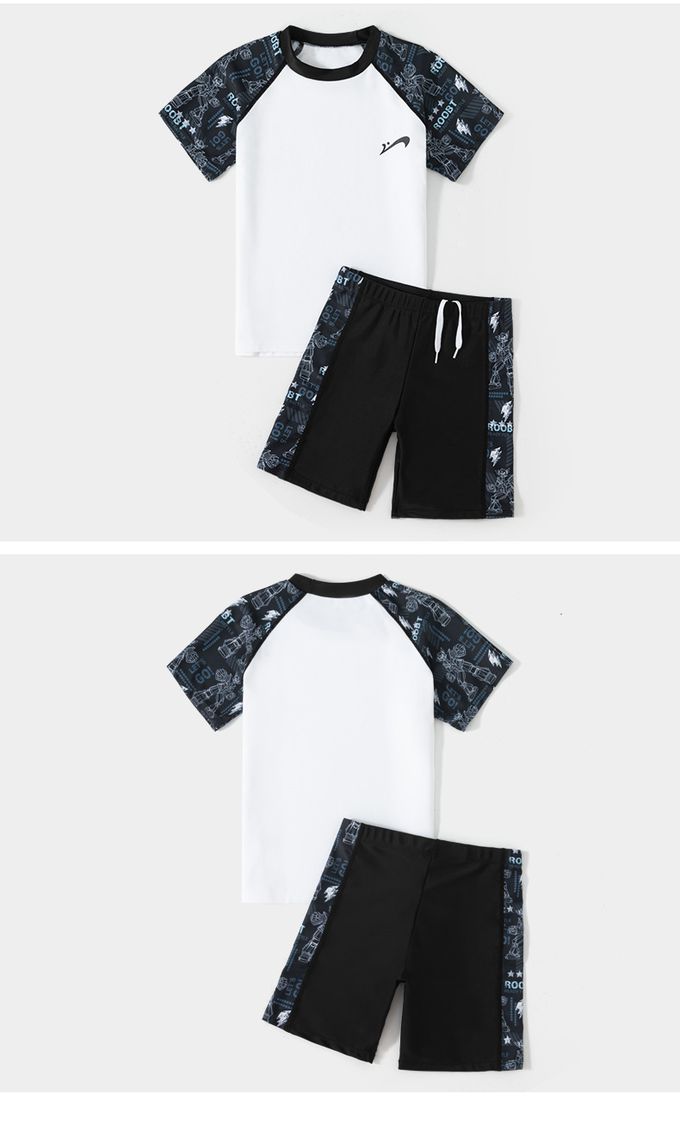 男寶短袖泳裝套裝-LET'S GO機器人-白+黑