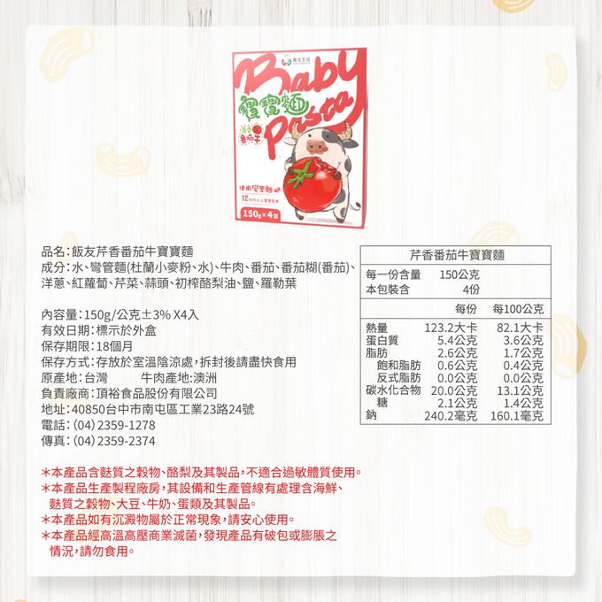 芹香番茄牛寶寶麵(150g*4包)/盒