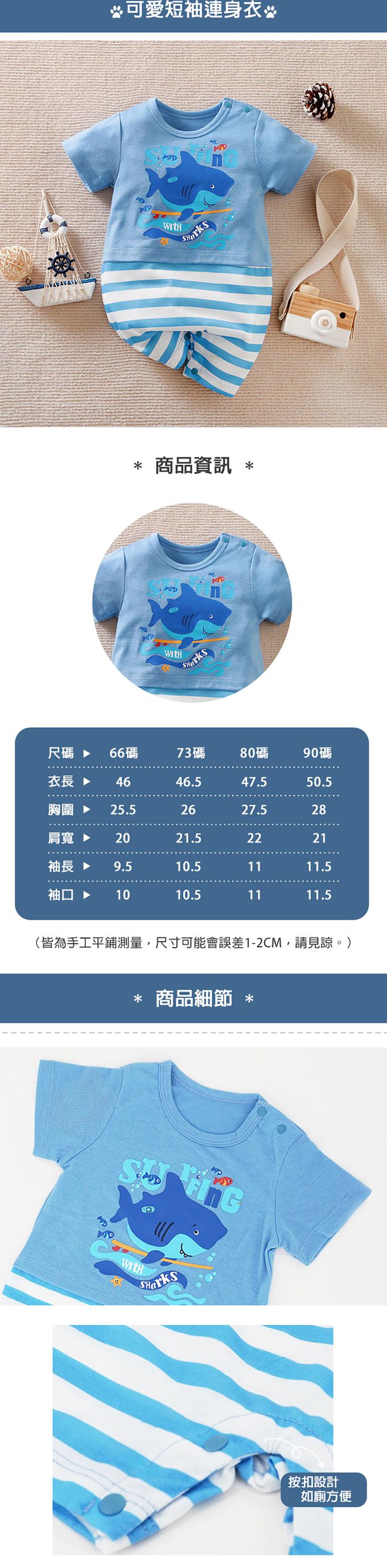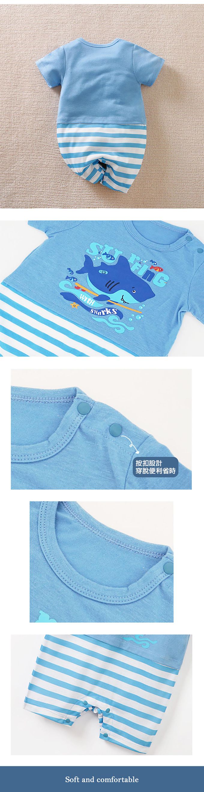 棉質短袖包屁衣 短袖嬰兒服-海浪飛鯊