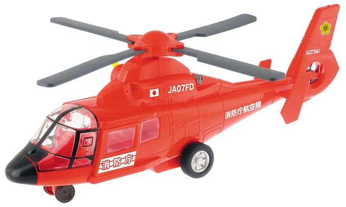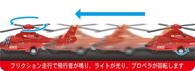 將後輪壓在地板上並向前滑動放開手時,會發出飛行的聲音、燈光閃爍,同時旋轉著螺旋槳向前前進。※螺旋槳沒有旋轉的話,則不會發出聲音。