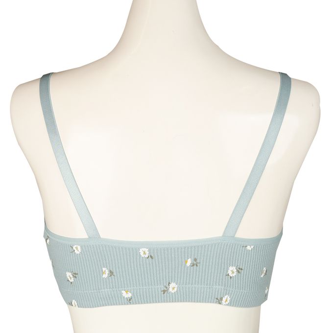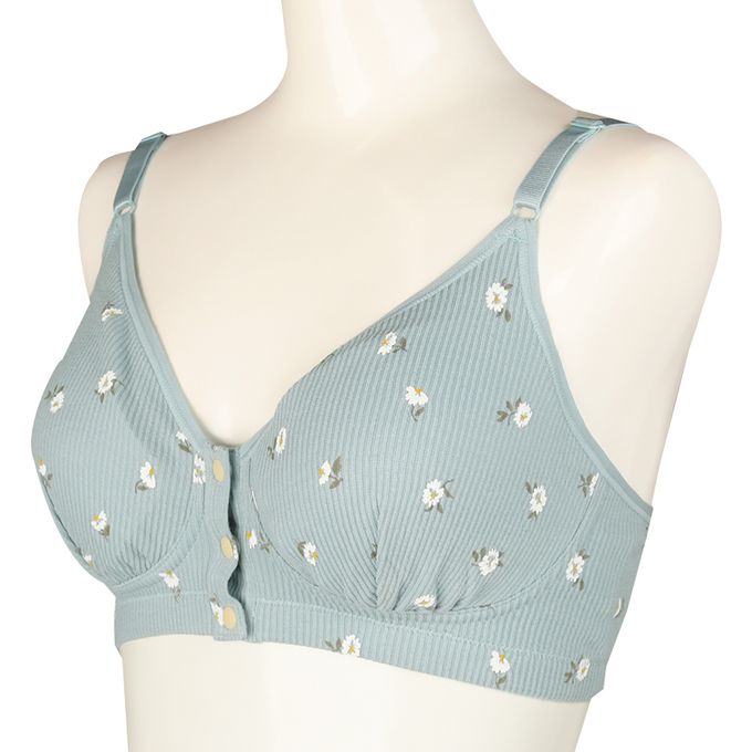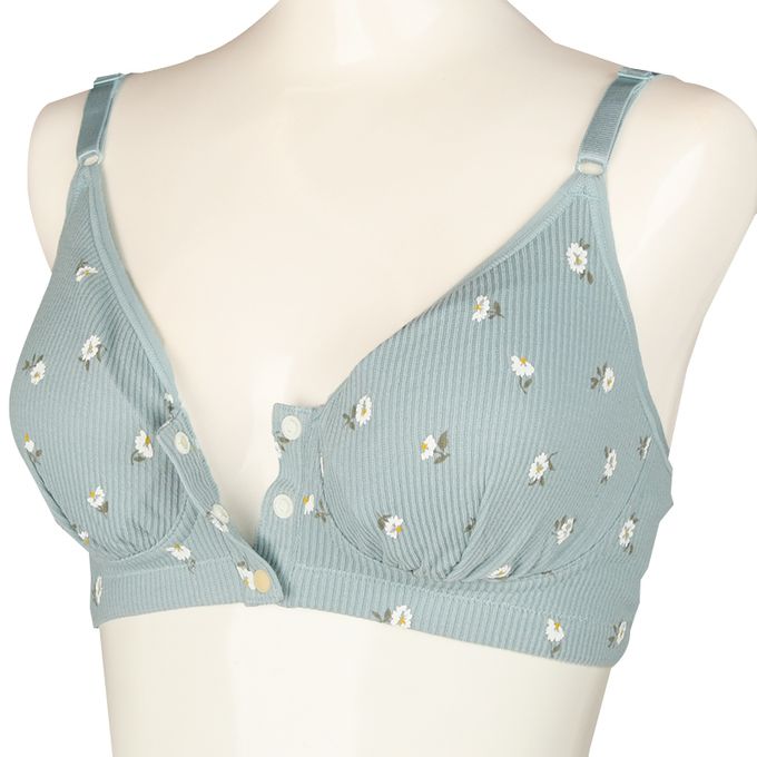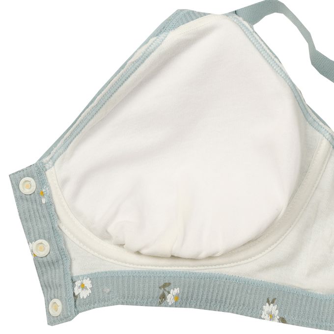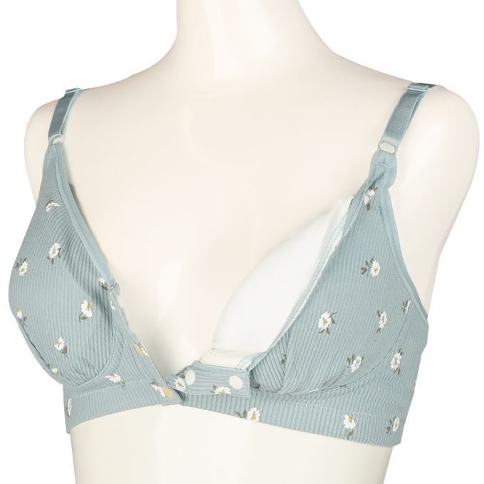 附胸墊哺乳胸罩-小花彈性羅紋-藍色