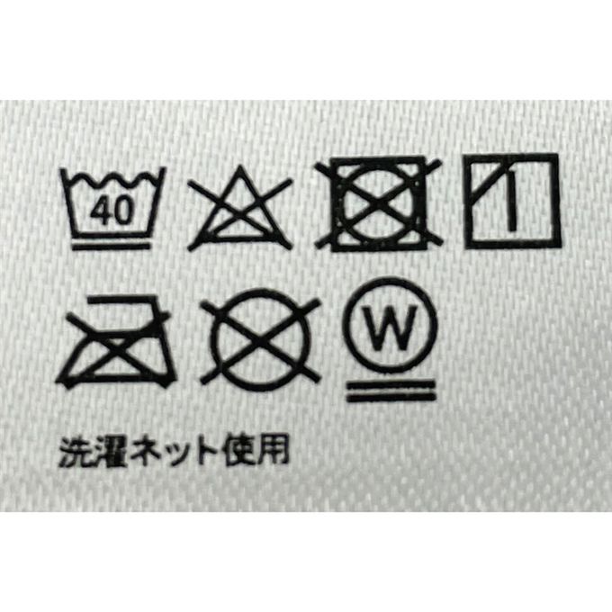 注意事項:●標示內容遵照台灣法規之規定。●請使用洗衣網。●請使用不含螢光增白劑的洗劑。●因容易勾住或卡住,請在穿著或洗滌時特別注意。