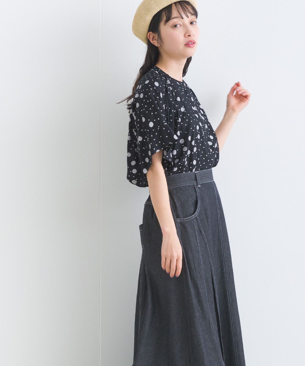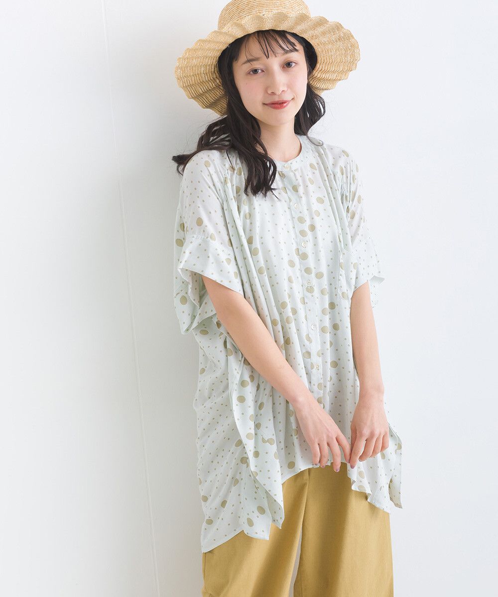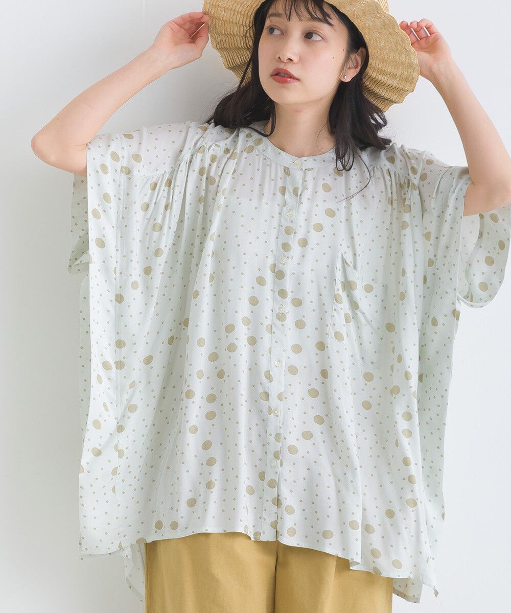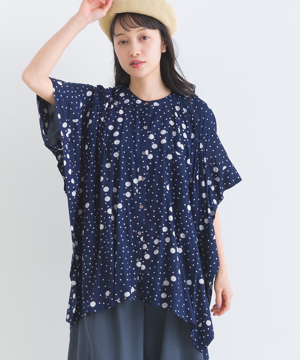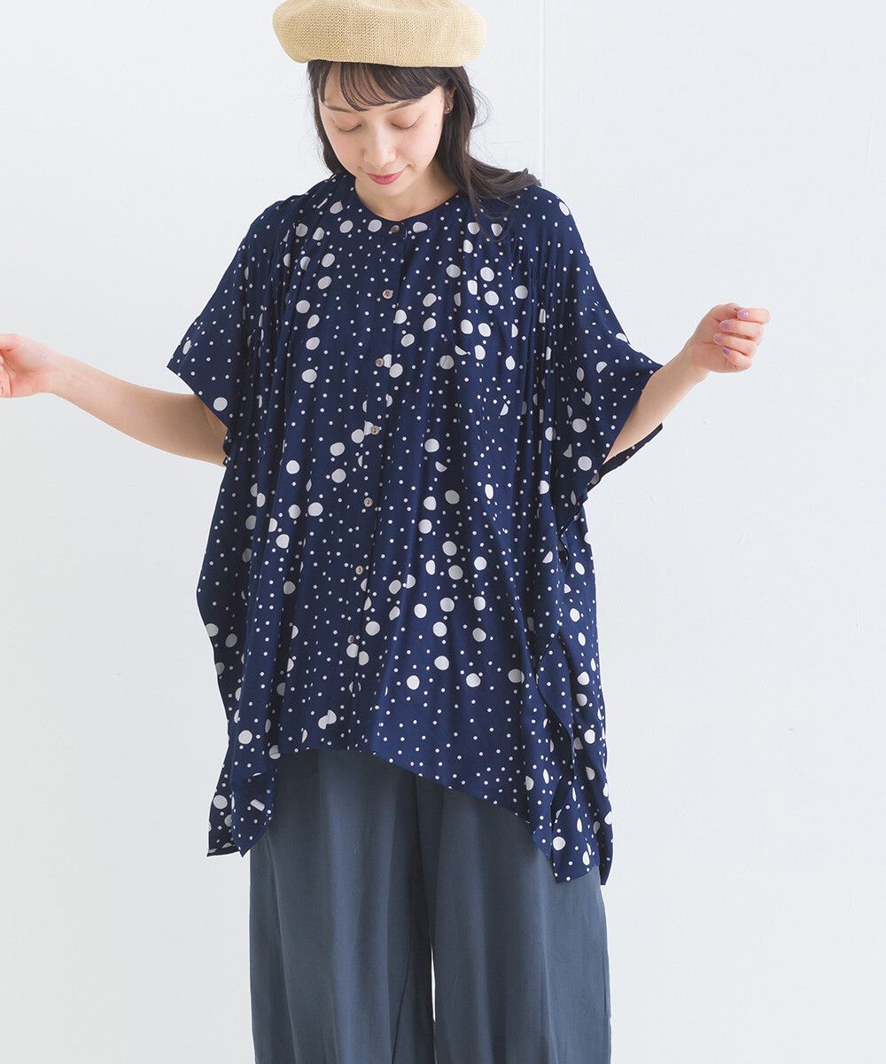 100%嫘縈 圓點印花大寬袖上衣