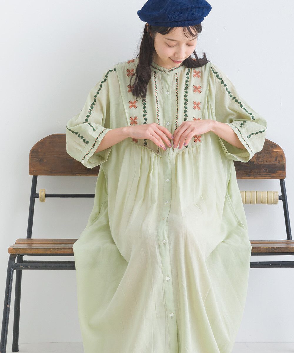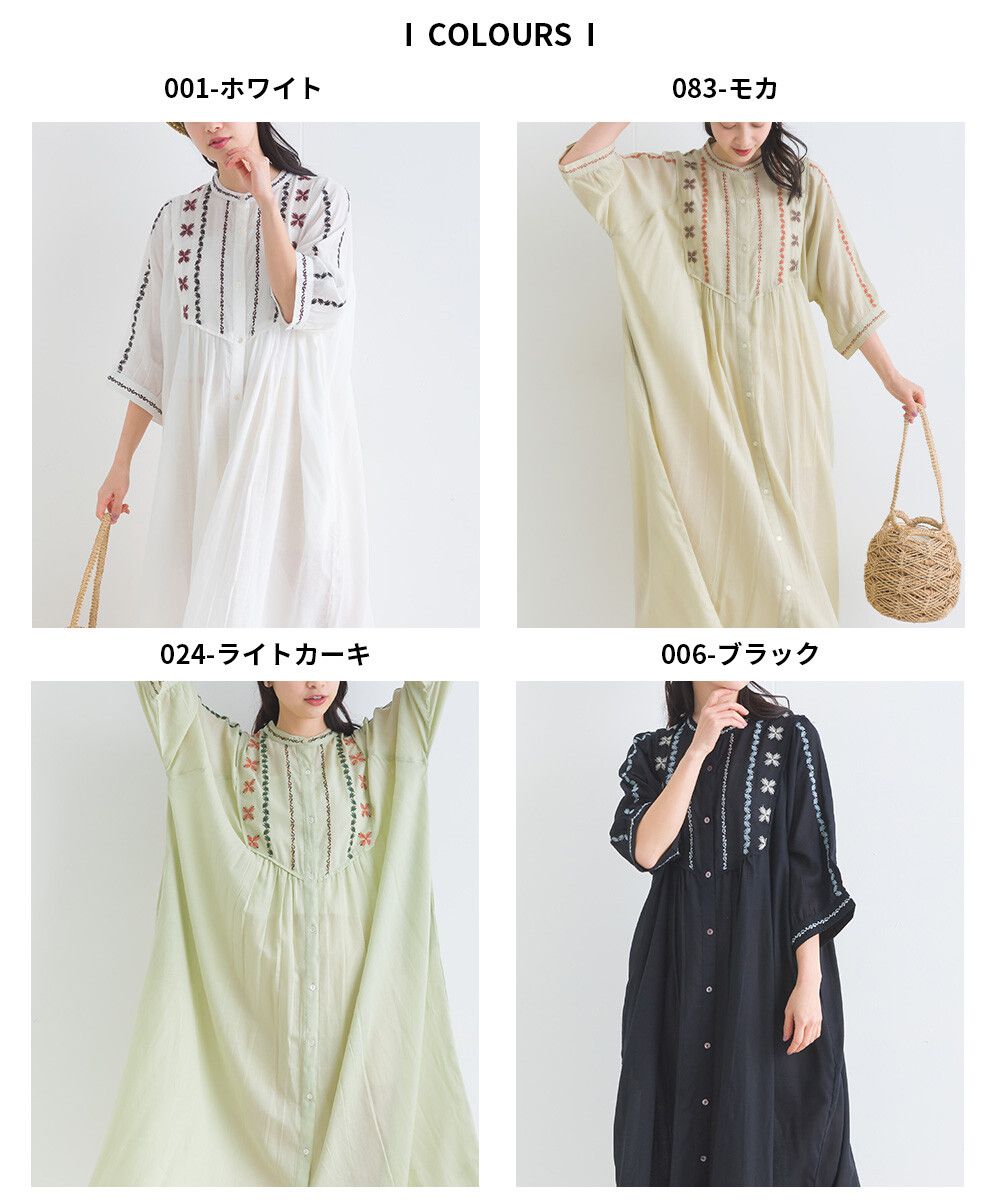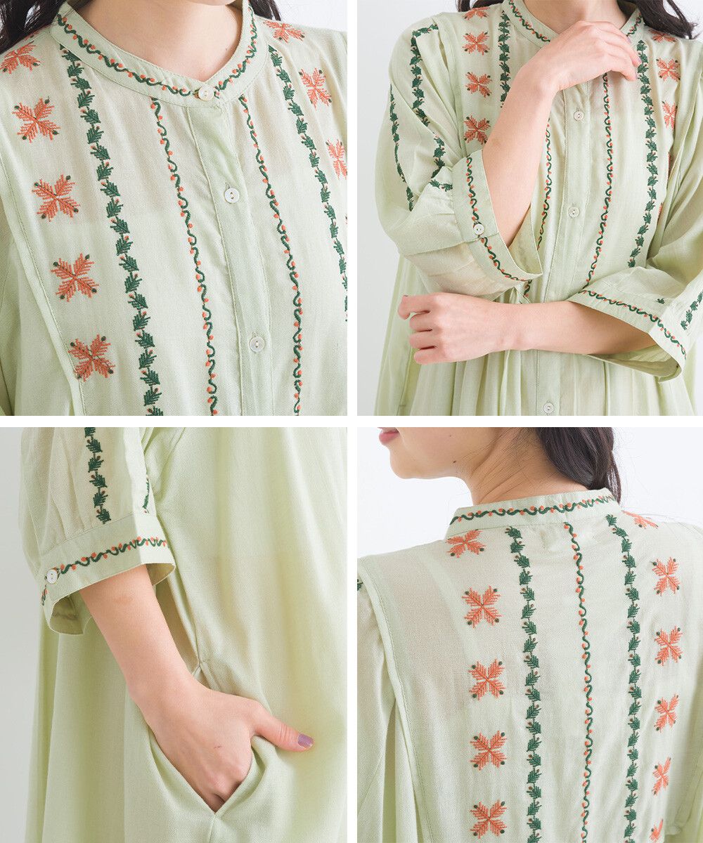 • 品名:100%印度棉 清爽刺繡襯衫式長洋裝