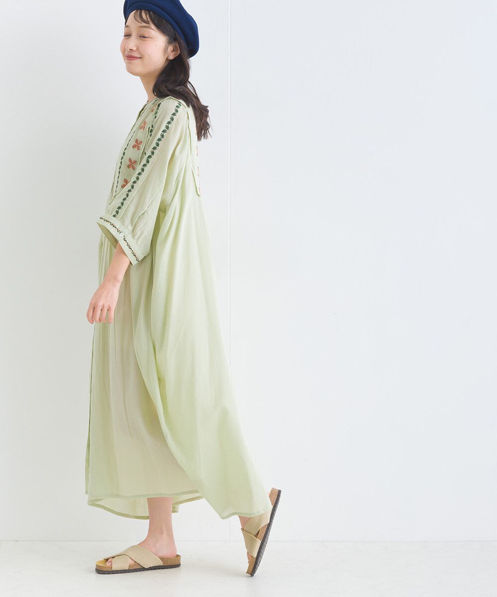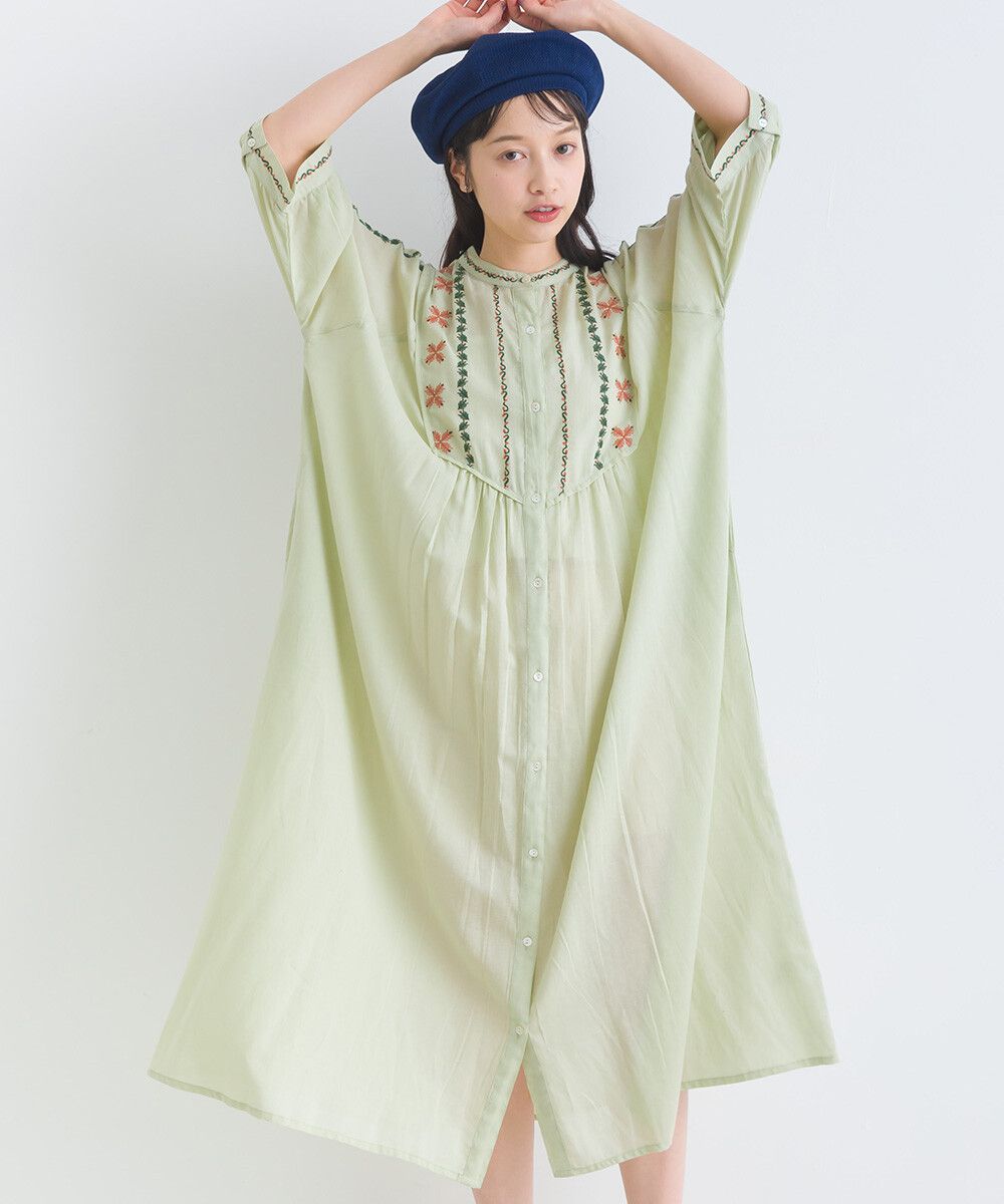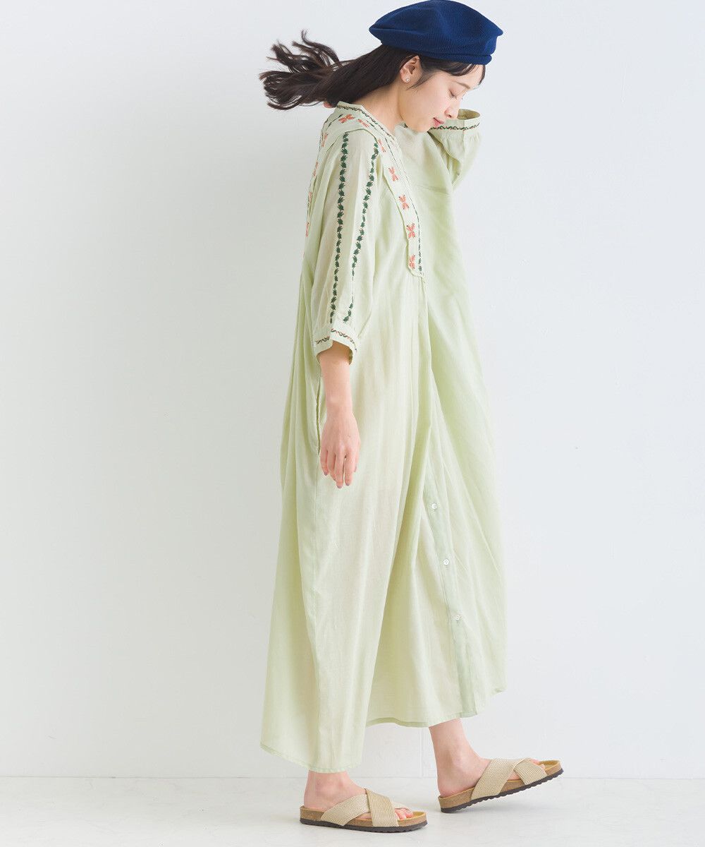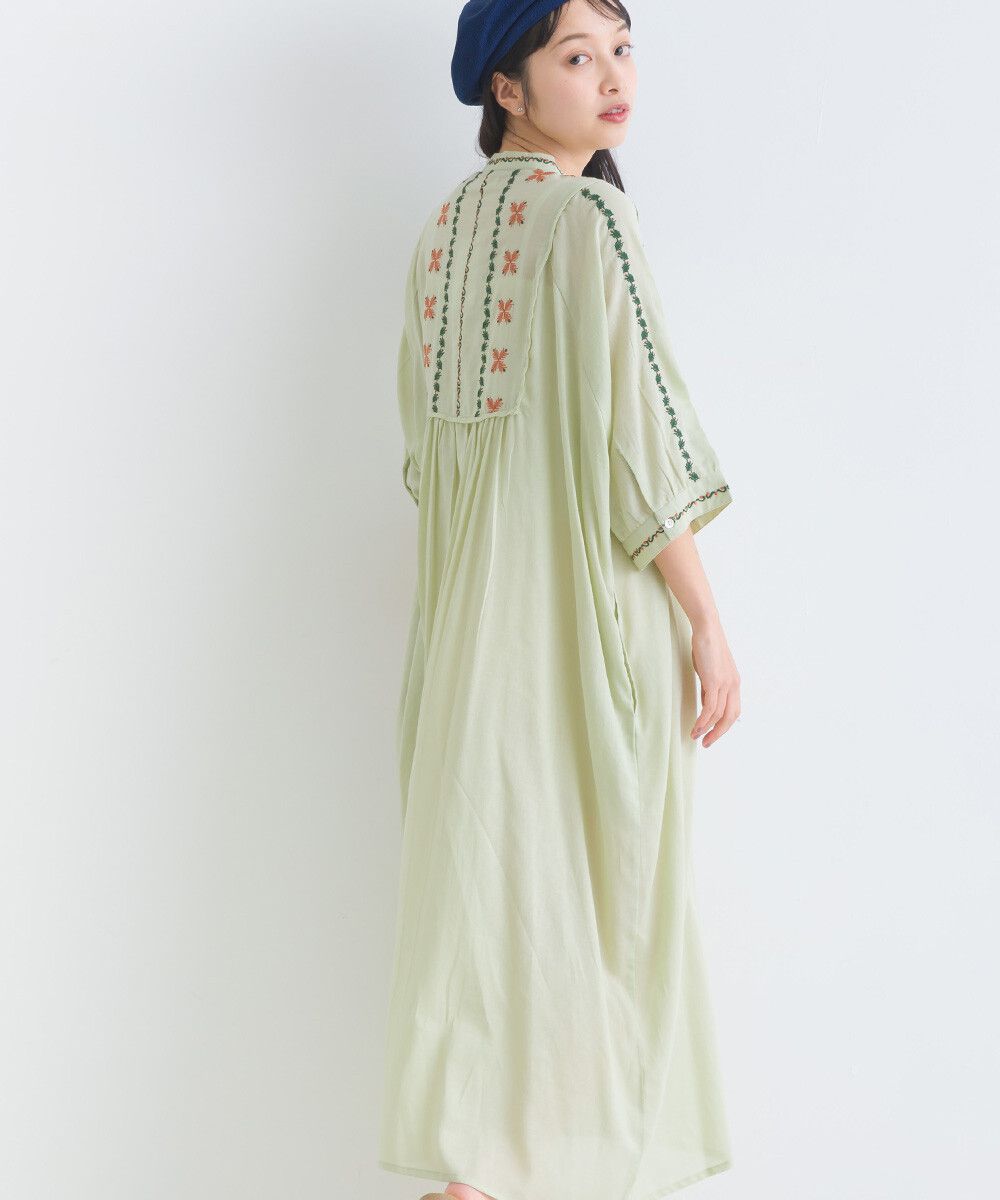 • 品名:100%印度棉 清爽刺繡襯衫式長洋裝
