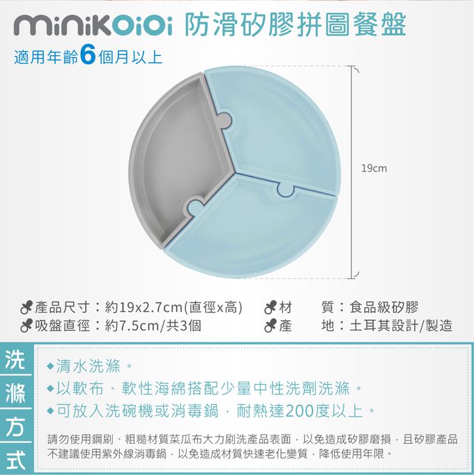 土耳其 minikoioi - 防滑矽膠拼圖餐盤-香草薄荷