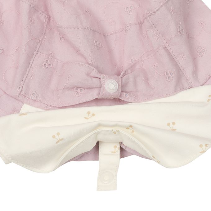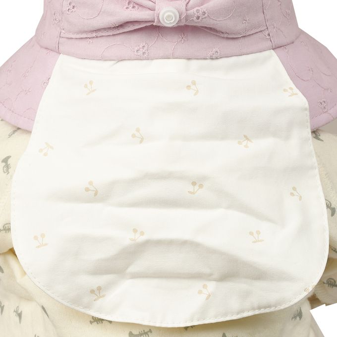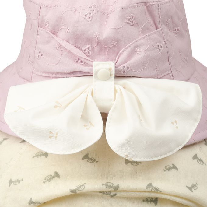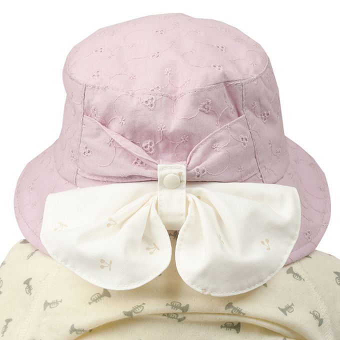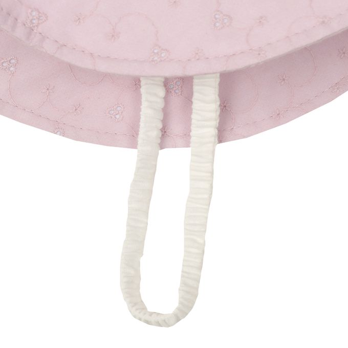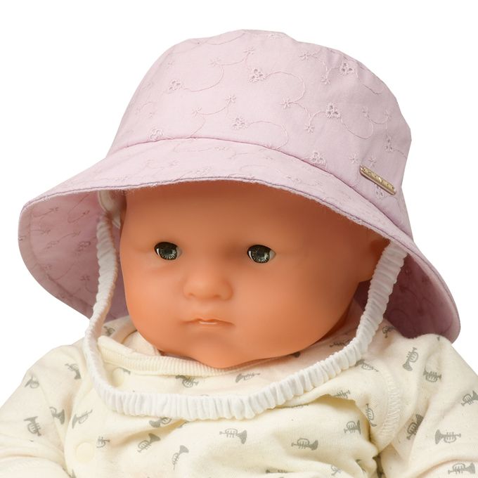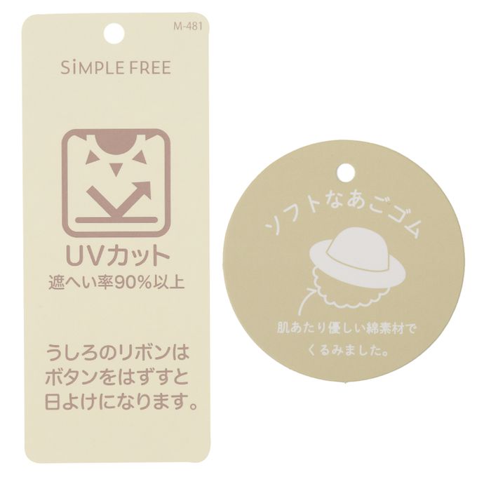 下巴有鬆緊帶可防止被風等吹落。下巴鬆緊帶用布料裹住,使膚觸更舒適。