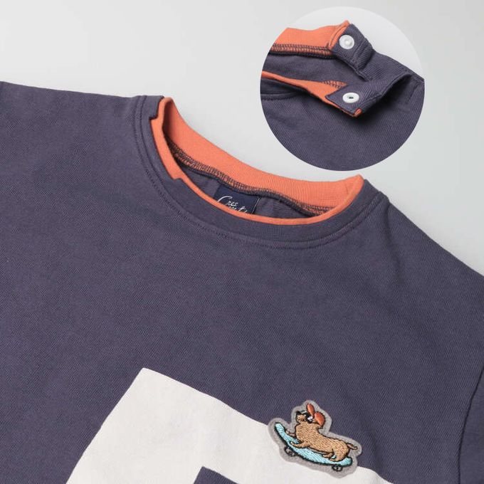領子的撞色設計,搭配大膽的英文字印花