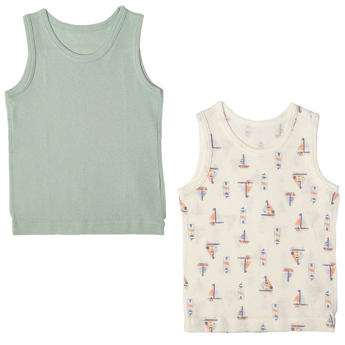 akachan honpo - 坦克背心2件組 速乾-帆船-綠色