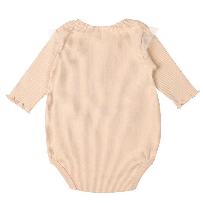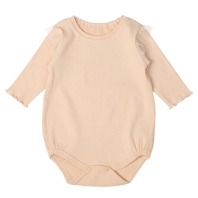 akachan honpo - 長袖包屁衣-羅紋針織布-淺卡其色