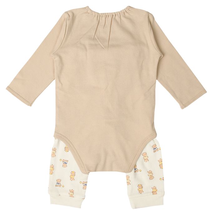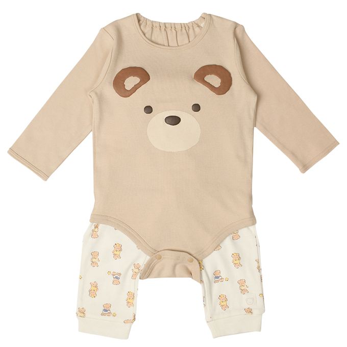 akachan honpo - 長袖包屁衣家居服-小熊-淺卡其色
