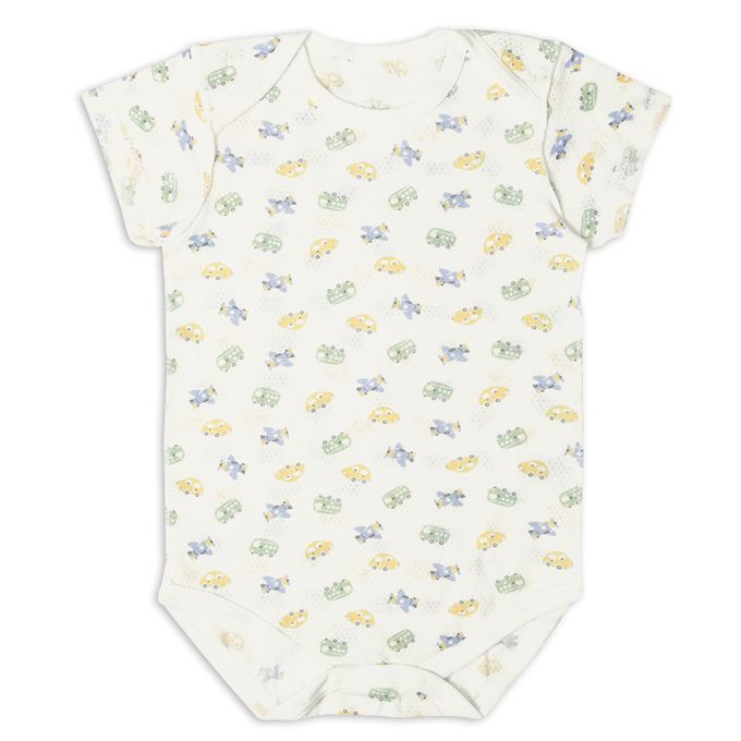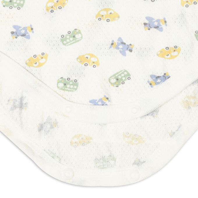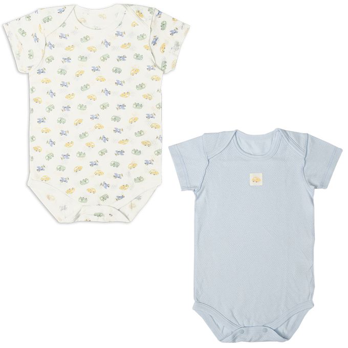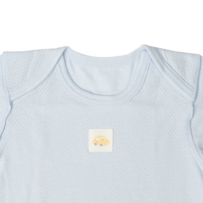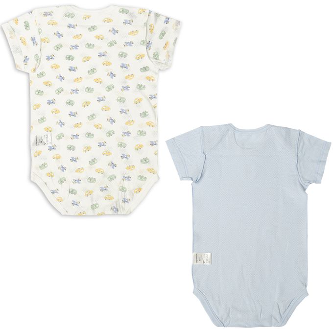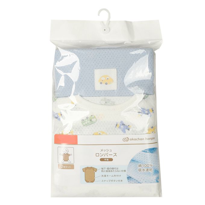 akachan honpo - 短袖網眼包屁衣2件組-套頭式 交通工具-淺藍色