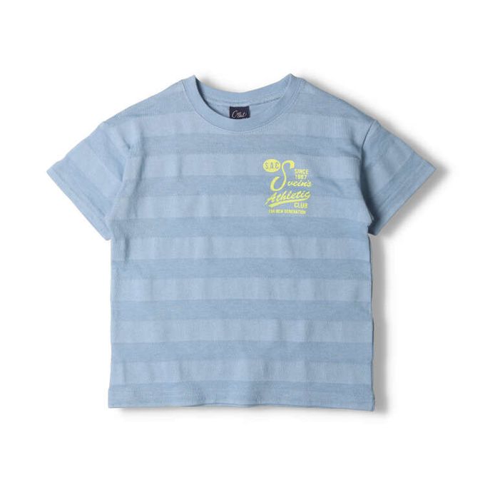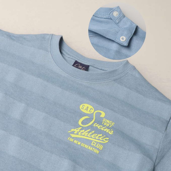 • 自然不造作的緹花橫紋T恤。版型寬鬆